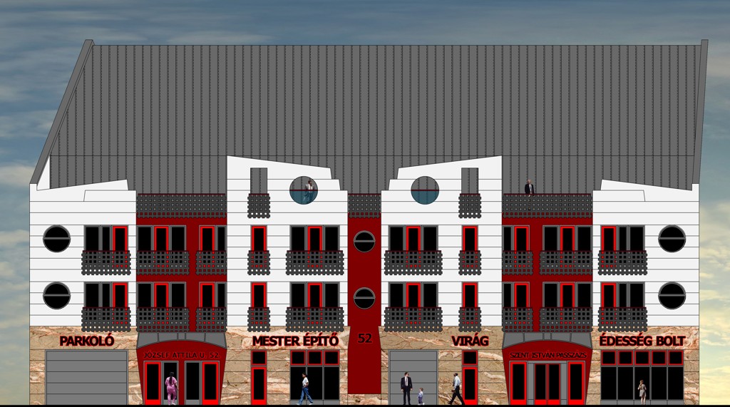 Az épületrész földszint, 3 emelet kialakítású, a teljes beépített terület 8.000nm.