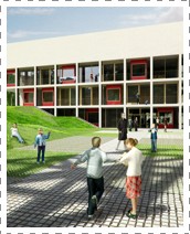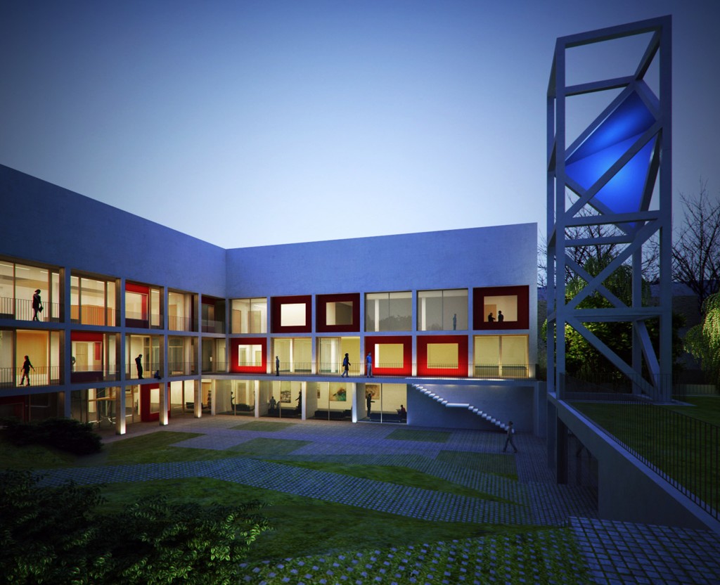 A legnagyobb, 3 dilatációra felosztott, 4 szintes traktus funkcióját tekintve közművelődési épület. Tartószerkezeti rendszere pillérvázas monolit vasbeton szerkezetként készül. Az épület mélyalapozással kombinált lemezalappal készül, a tervezési feladathoz tartozik továbbá a szomszédos épületek alapozás megerősítésének tervezése is.